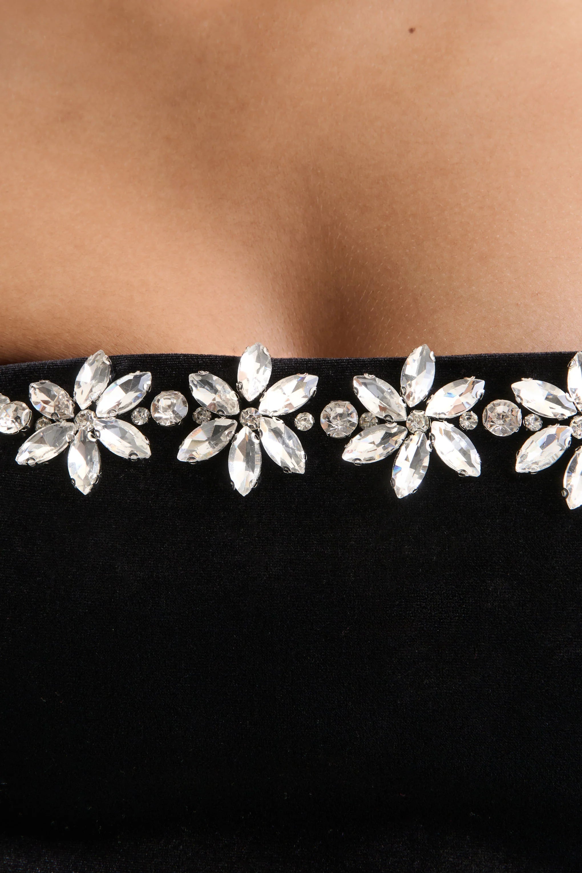 Effortlessly elegant, this premium LBD is on everyones wish list this party season. Crafted in a structured silhouette of a soft stretch velvet, Naia is defined by its bandeau neckline trimmed with glistening diamante embellishments. Let Naia do the talking any pair yours with some matching diamante accents like Coralie.