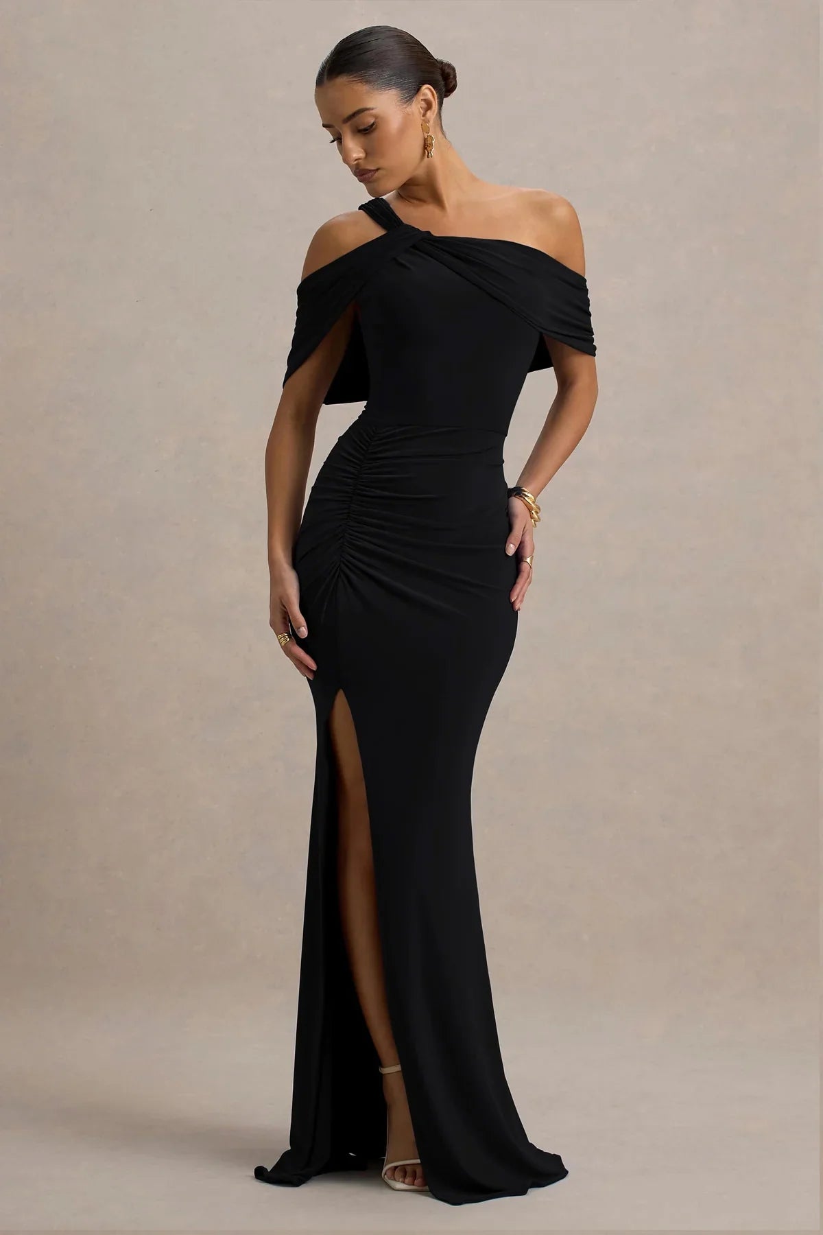 For a look that screams cool girl chic, meet Nala, our contemporary cut-out designed maxi dress that's perfect for every night in the city. With a sultry back detailing and asymmetric neckline, everyone will want to steal your look for themselves. Made from a trending black shade of our premium stretch jersey, you'll feel comfortably refined all day long.