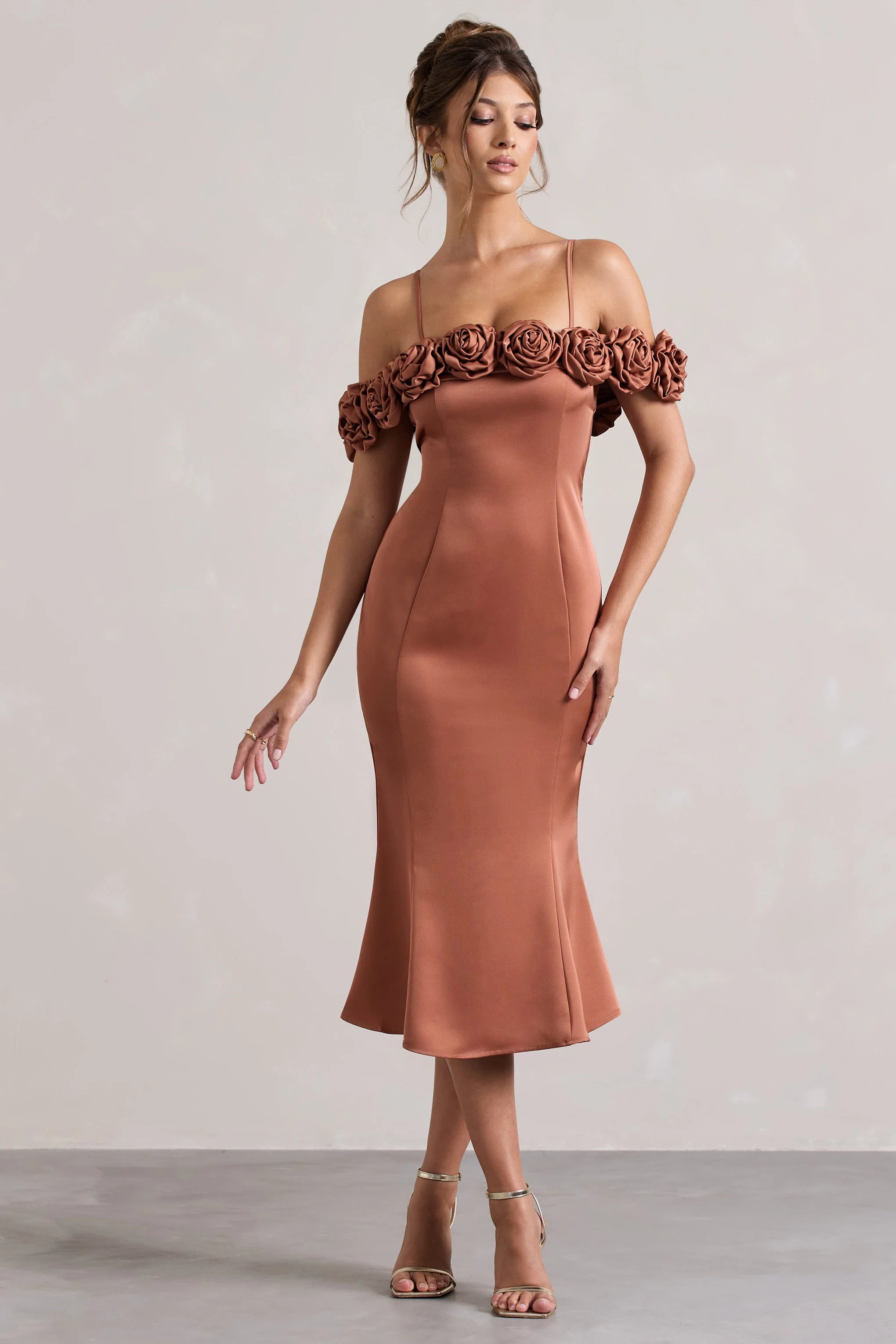 Special occasions call for a special dress like Petunia. Expertly crafted in a silky satin fabric, this rust midi is a feminine choice for any event whether that be a spring wedding, race day or graduation ceremony. Defined by an artful array of flowers along its bardot neckline, whats not to love?