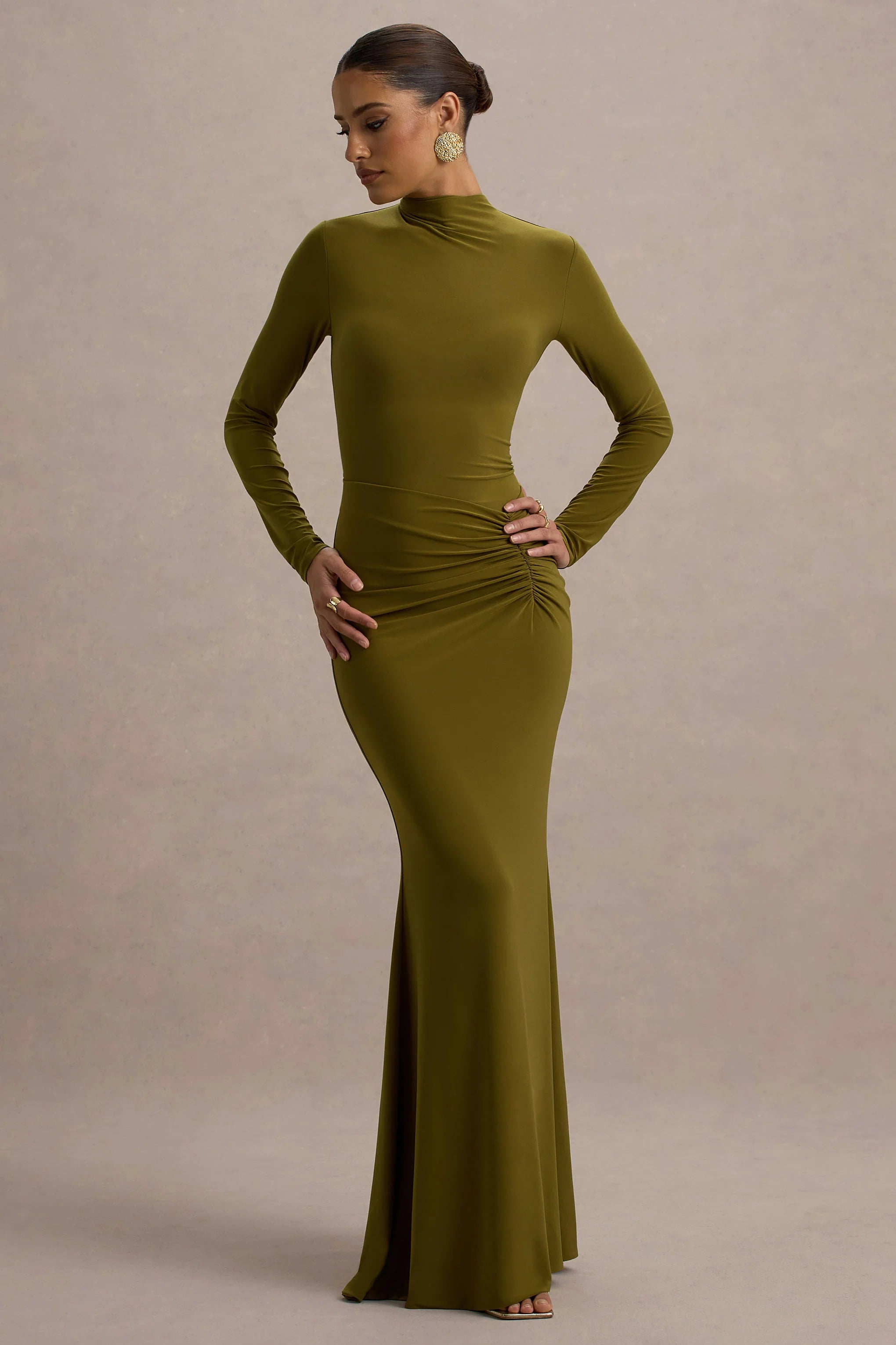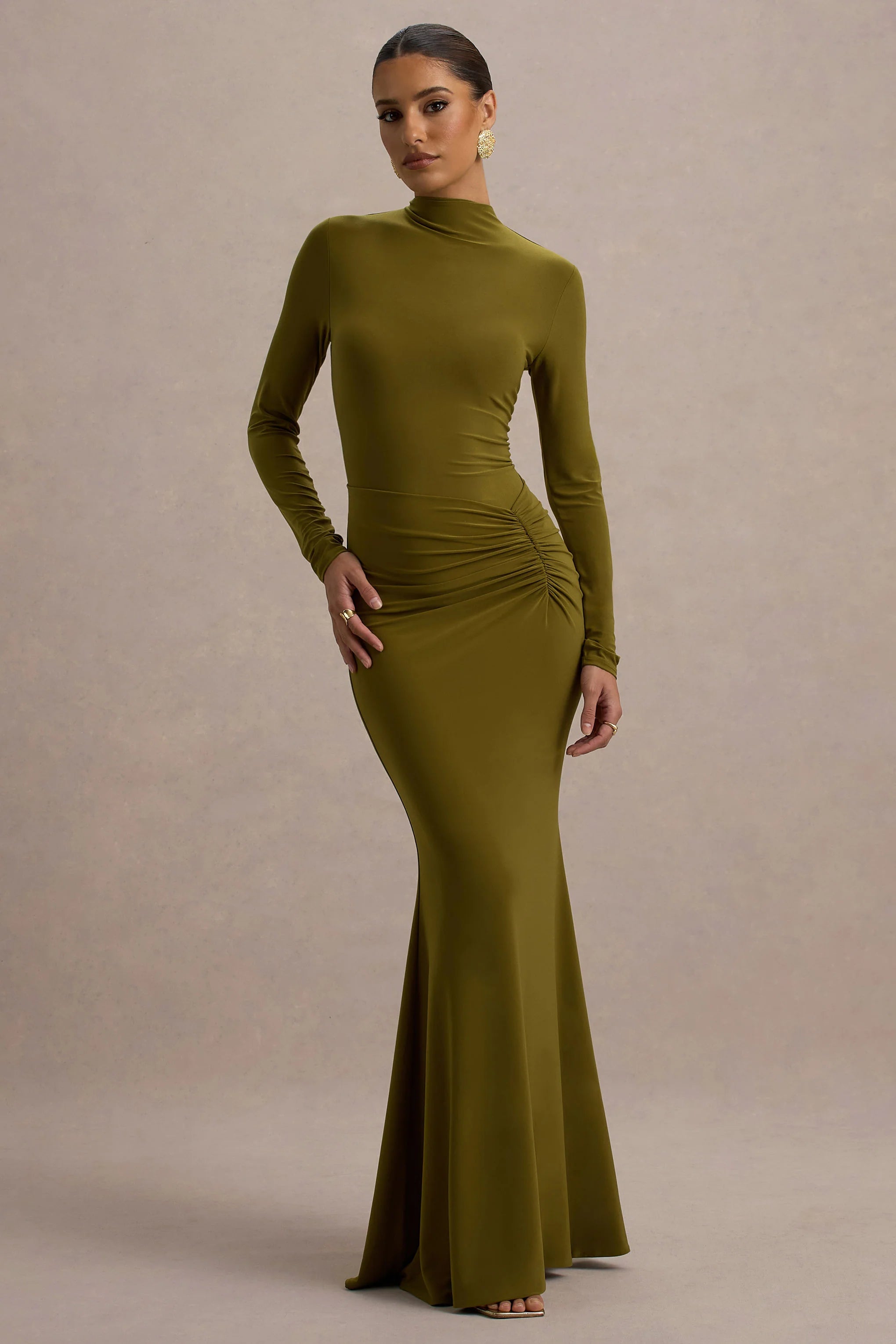Step into effortless elegance with Reid, a green-hued maxi dress designed to make an impression. Crafted from our premium jersey, this dress features long sleeves and a flowing silhouette which moves gracefully, making Reid perfect for formal evenings, weddings, or special occasions. Pair it with subtle heels and delicate accents for a look that radiates sophistication and charm.