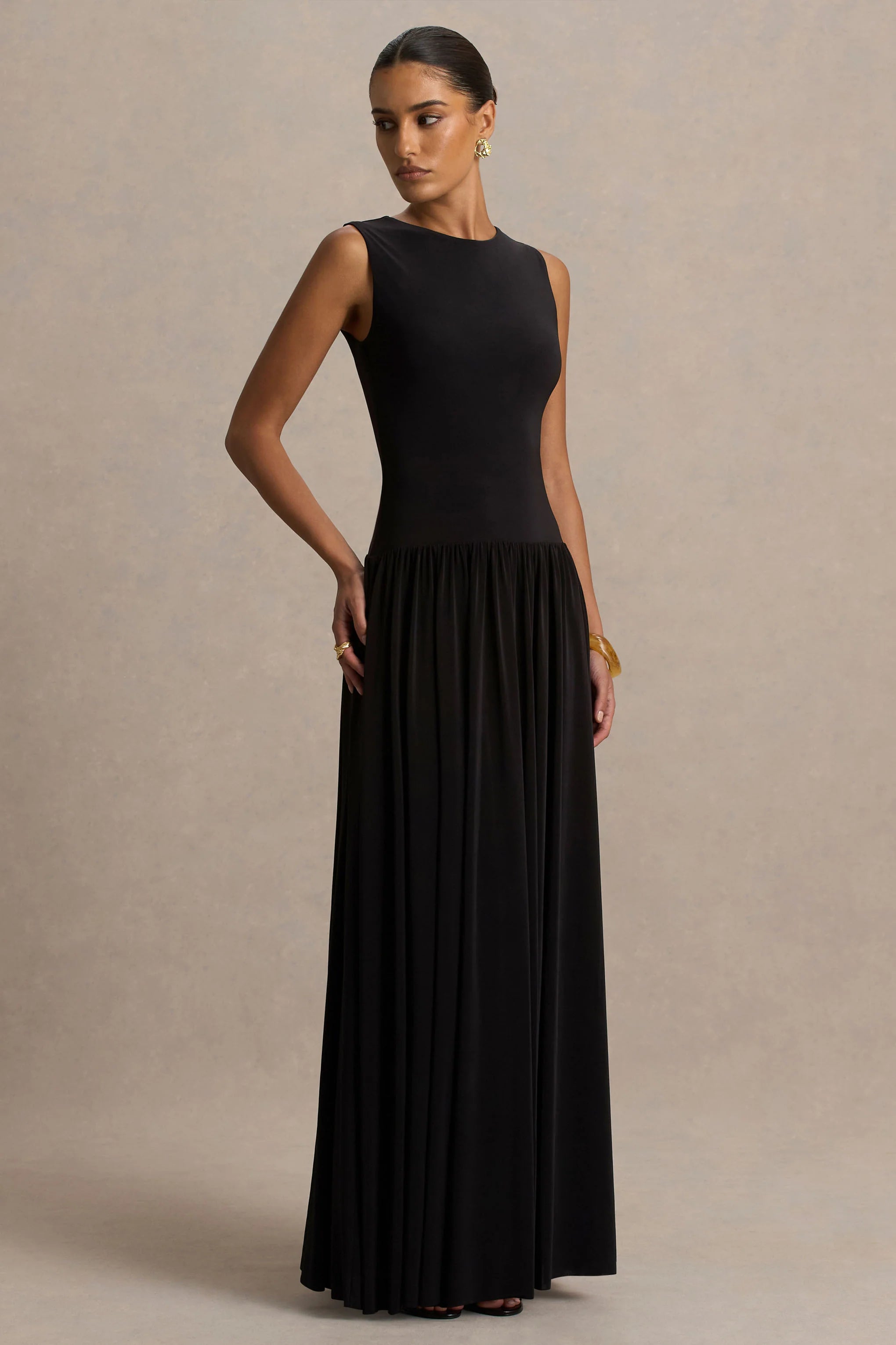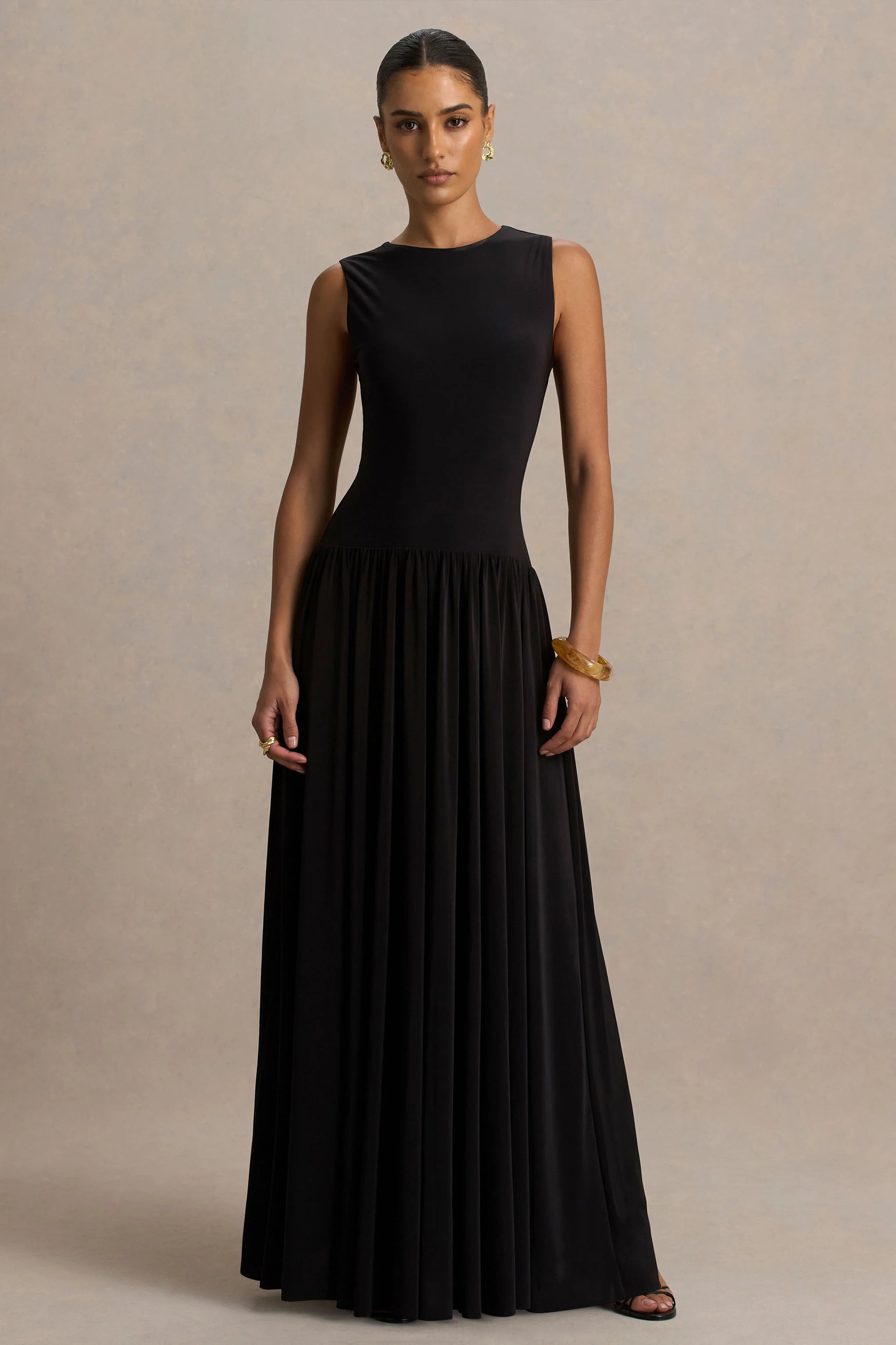 Embrace understated glamour in Rosalita, where simplicity meets striking sophistication. Crafted from our premium black stretch jersey in a chic, floor-skimming maxi length, it smooths over the body for a flawless fit. The crew neckline and sleeveless design create a clean, modern silhouette, while the drop waist adds a subtle nod to timeless elegance. Perfect for refined soirées, evening events, or any occasion that calls for glamour, Rosalita is a masterclass in minimalism with impact.