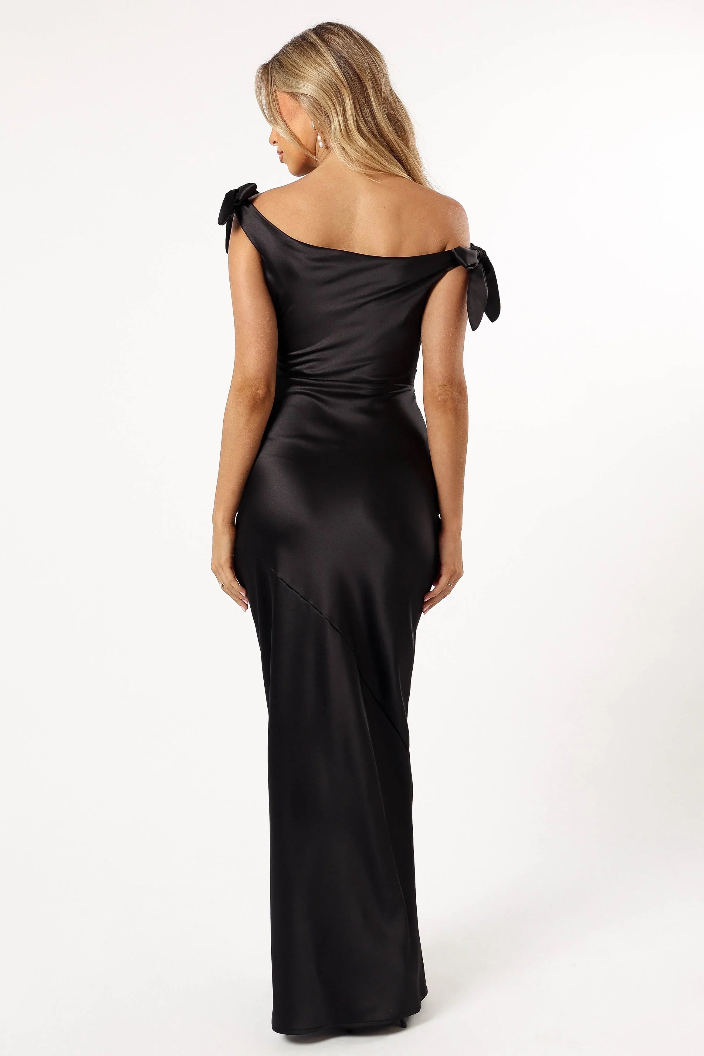 DETAILS The maxi length offers a flattering silhouette that can be worn for any occasion. But have you ever considered adding an asymmetric neckline to your maxi dress? This trendy style is the perfect way to elevate your look and make a fashion-forward statement.