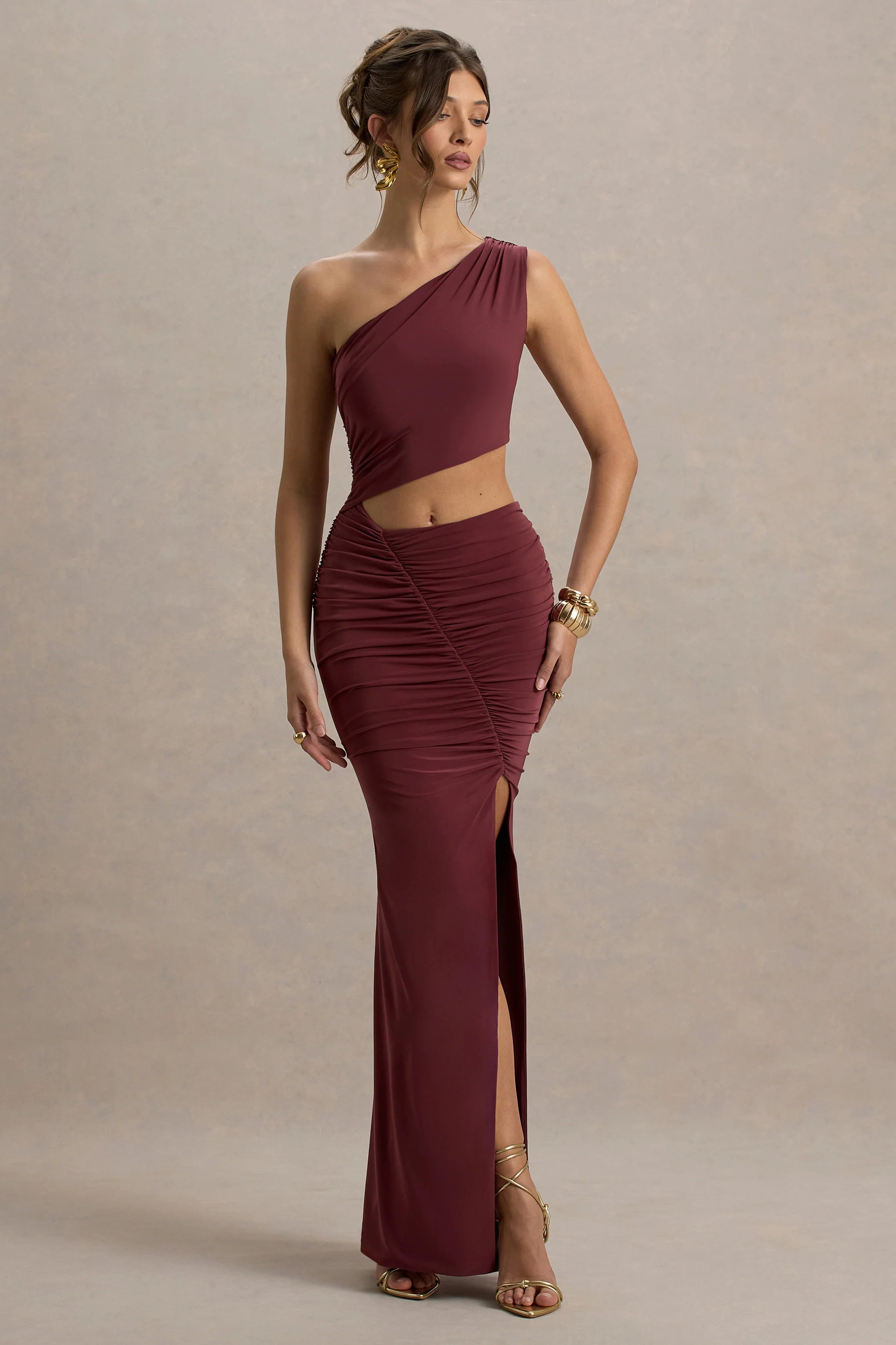 Embrace your femininity with our latest maxi Sena. Perfect for sunset dinner dates on the beach, this piece comes crafted in our premium jersey in a gorgeous burgundy shade. Decorated in striking cut-out details and an asymmetric neckline, Sena is bound to turn heads at your next event.