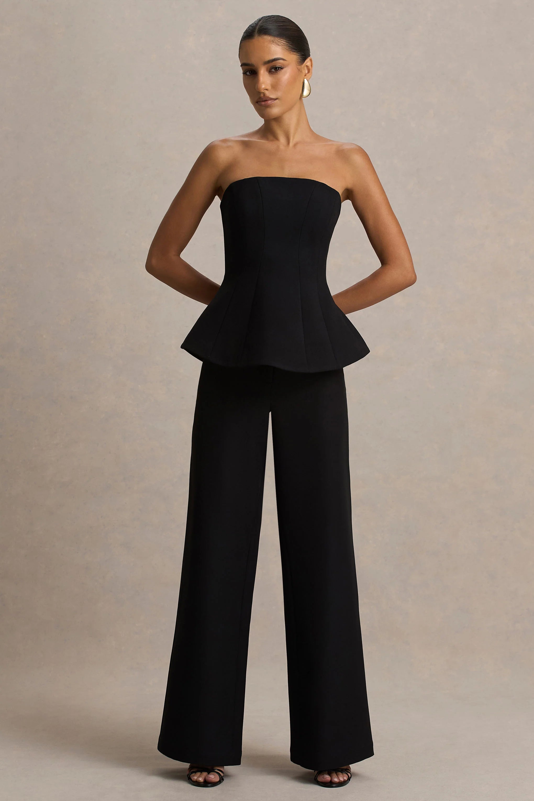 Introducing Silvia, a versatile wardrobe staple that's tailored to perfection for modern elegance. Crafted from our premium stretch crepe in a classic black hue, these trousers are designed to flatter while exuding timeless sophistication. Featuring angled pockets that nod to sleek tailoring and a fluid wide-leg silhouette that elongates the frame, Silvia transitions seamlessly from desk to dinner. Pair with our Rosalina blazer for a look that'll command attention.