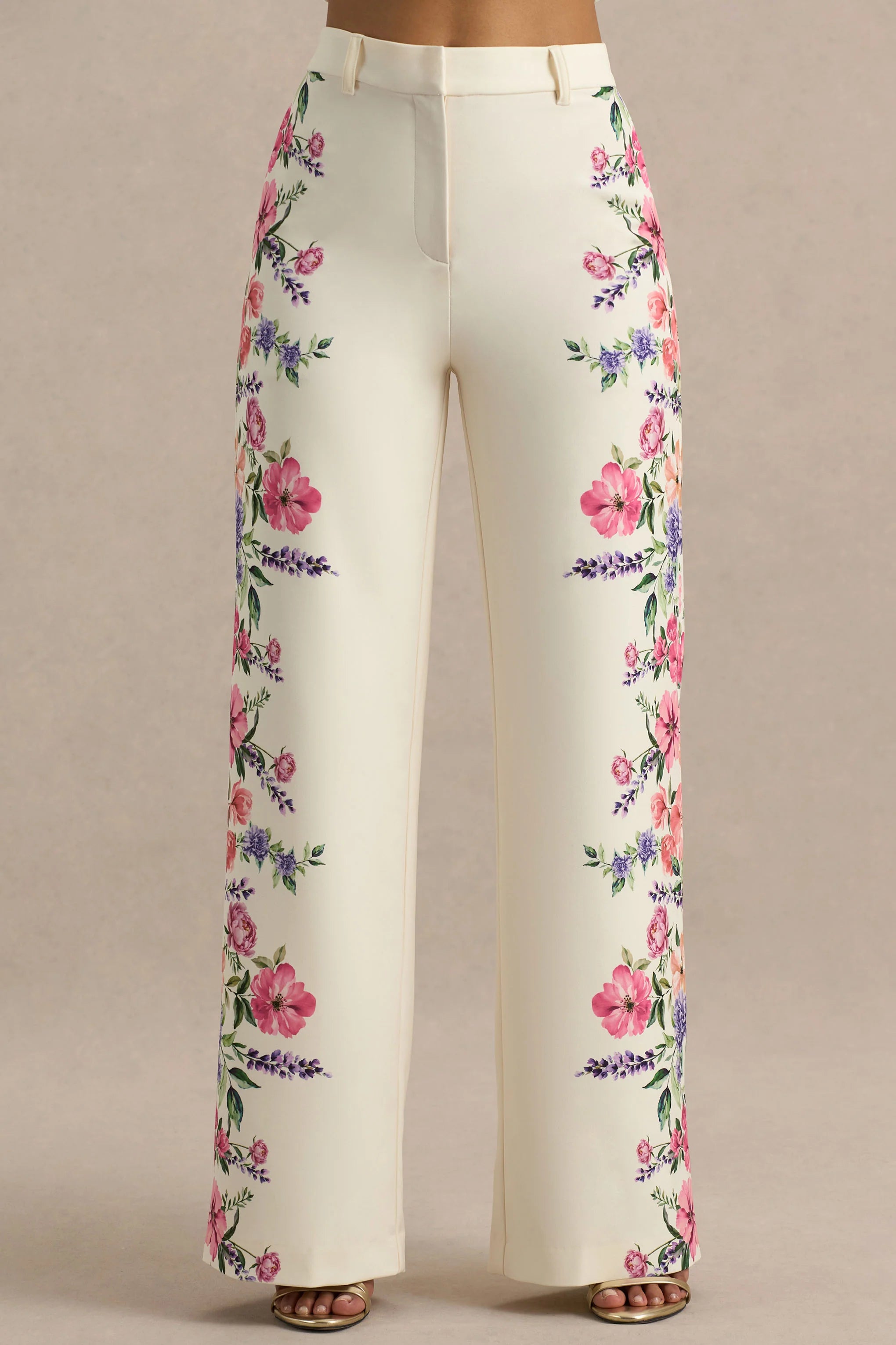 Tailored to perfection, Solana offers a refined take on summer style. Cut from our premium crepe in a crisp white floral border print, these trousers balance structure with softness for a polished yet effortless look. Designed with functional belt loops, a clean zip front, and a hook-and-bar waist fastening, Solana ensures a secure, flattering fit. The straight-leg cut elongates the silhouette, making it a versatile staple for both elevated daytime looks and sophisticated evening styling.