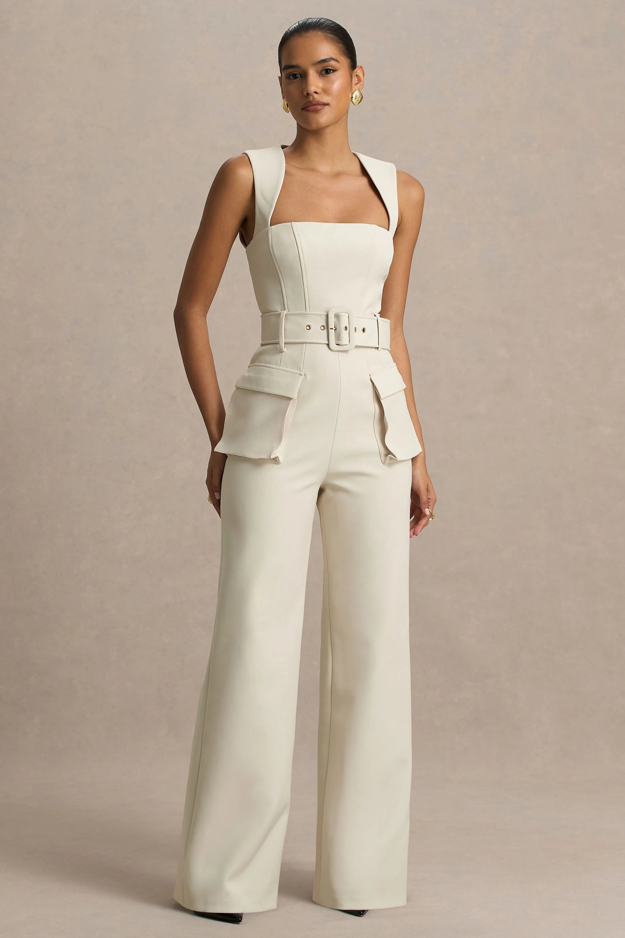 Step into sleek sophistication with Solice, a timeless piece that embodies effortless glam with an edge. Crafted from our premium cream stretch crepe, this jumpsuit features a flattering square neckline and a daring open back detail that turns every entrance into a statement. Functional front pockets add a touch of modernity, while the tailored fit ensures you look polished from every angle. Perfect for nights out, parties, or any occasion where you want to make a chic, confident impression.