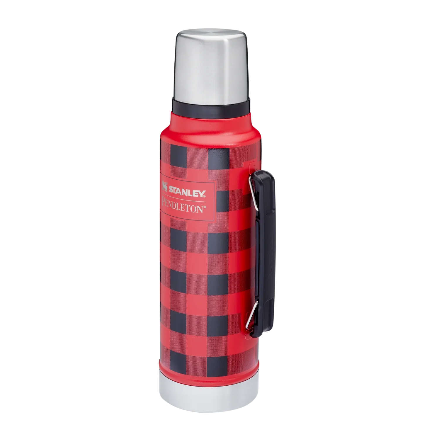 No pattern evokes the outdoors like the Pendleton red and black check on this Classic Stanley Bottle. It’s always ready for a day outside – whether it’s a nature walk or a picnic with a view. You get all the Stanley durability and performance you love, with double-wall vacuum insulation to keep your drink at the ideal temperature. The twist-and-pour stopper gives you a smoother pour. The collapsible handle is made for easy grab-and-go, and the insulated lid doubles as a cup for drinking, too.