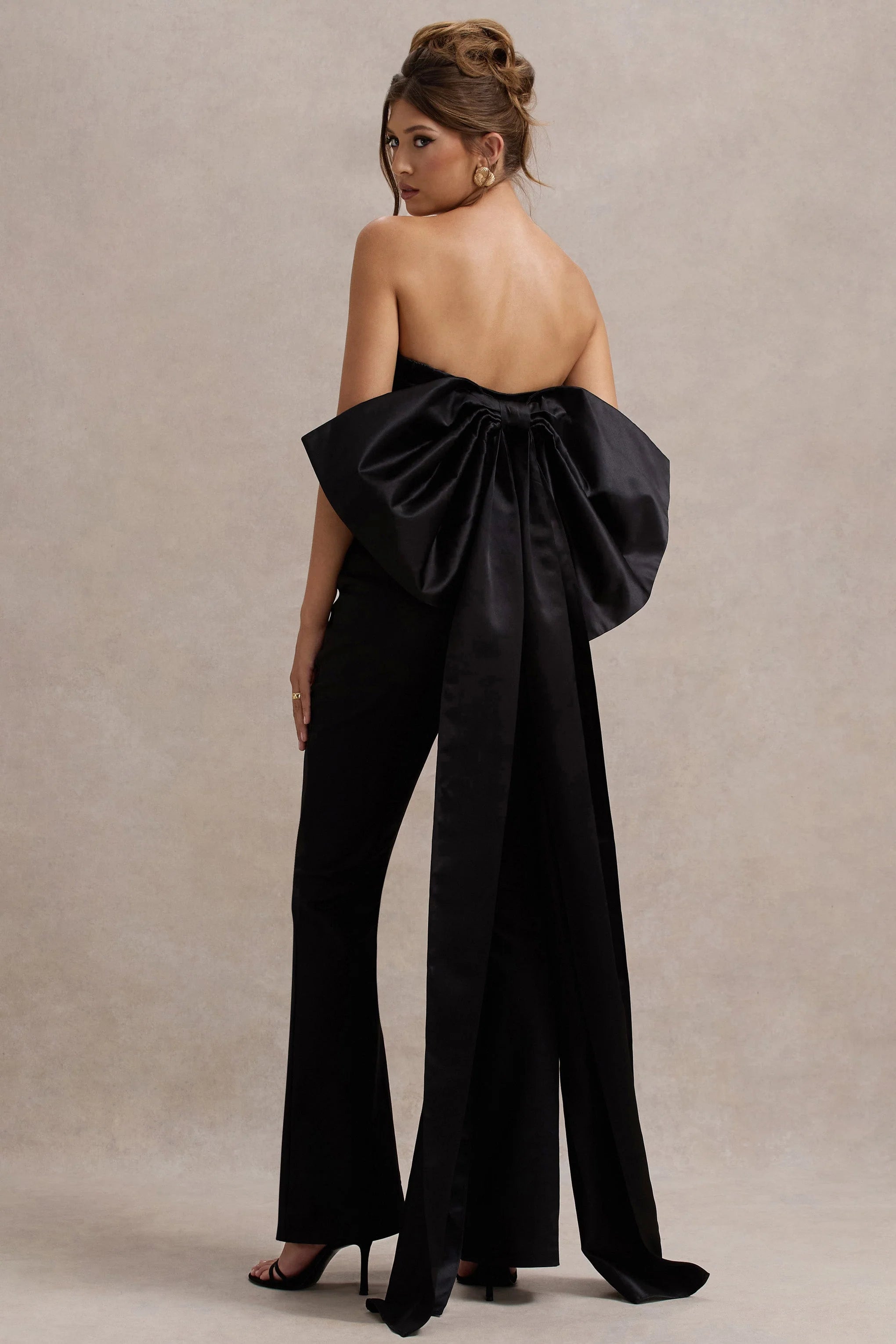 Party season calls for a statement like Sweet Escape, our couture-like crop top. Designed to dazzle in a black satin finish, this piece boasts removable cami straps and an extravagant bow detail highlighted by a floor-length sash. Whatever the occasion, have all eyes on you in Sweet Escape.
