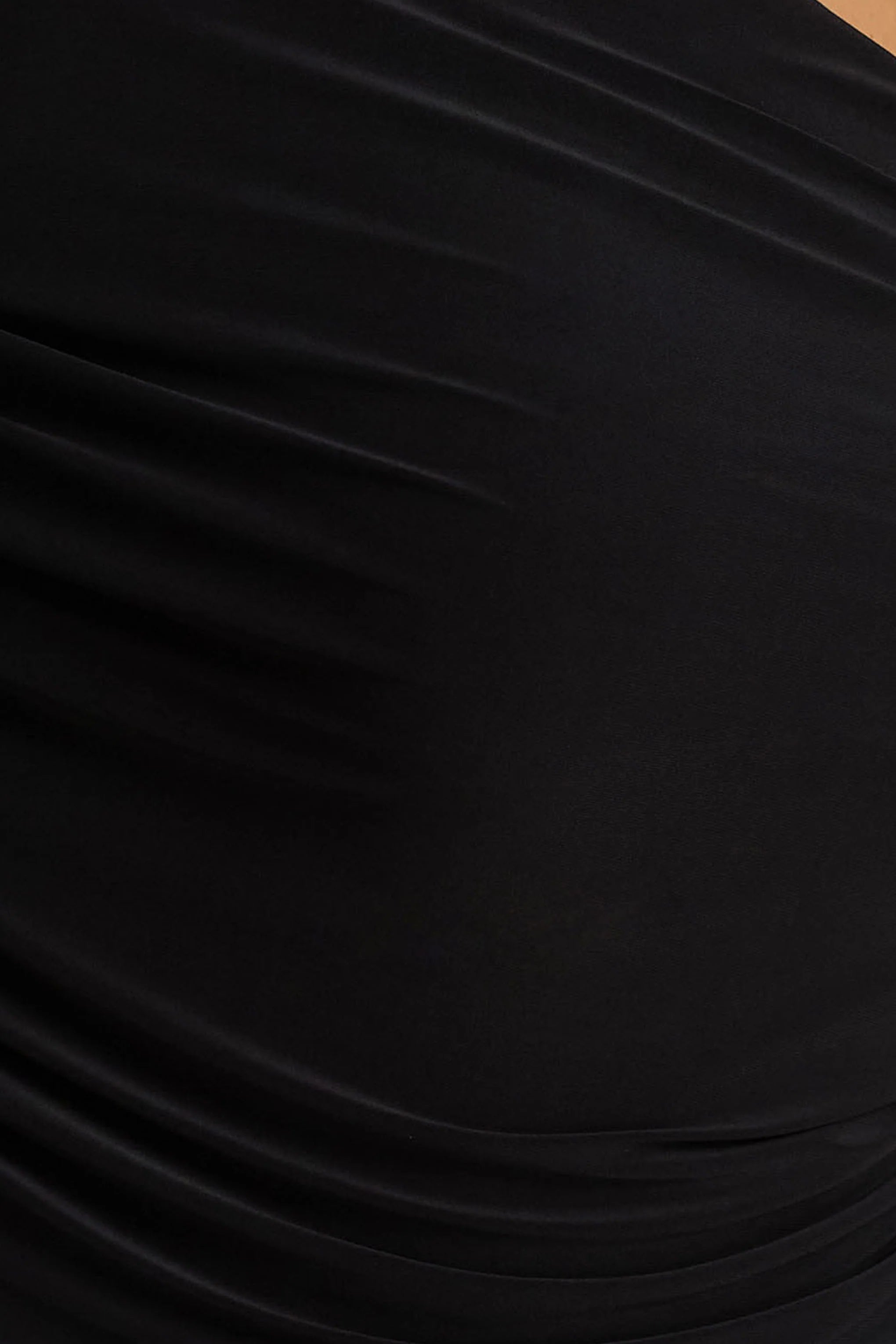 Steal the spotlight in Sylvie, a striking maxi designed to sculpt and flatter. Crafted from our premium stretch jersey in a bold black hue, this gown features an asymmetric neckline that frames the shoulders with modern elegance. A draped overlay with gathered detailing enhances the silhouette, creating soft movement that flows into a sweeping maxi length. Effortless yet impactful, Sylvie is made for unforgettable entrances.