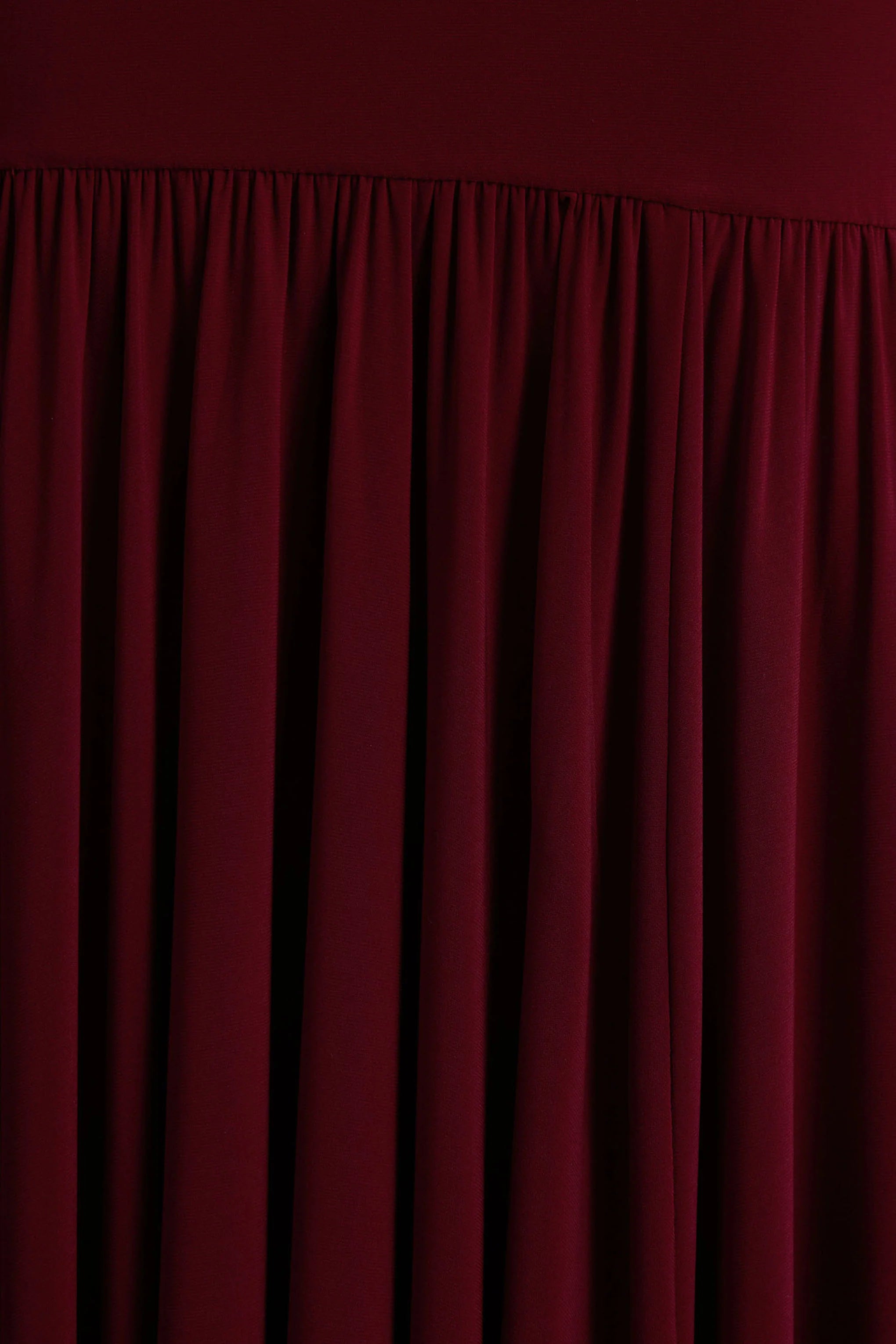Turn heads effortlessly in Tasmin, a maxi dress that exudes understated elegance. Crafted in a rich burgundy hue of our premium stretch jersey, its sleeveless design and maxi length create a flattering silhouette that drapes beautifully over the body. Featuring a sophisticated high neckline and a chic drop waist, this piece combines classic tailoring with contemporary style. Perfect for evening events or special occasions, Tasmin offers a sleek look with effortless glamour.
