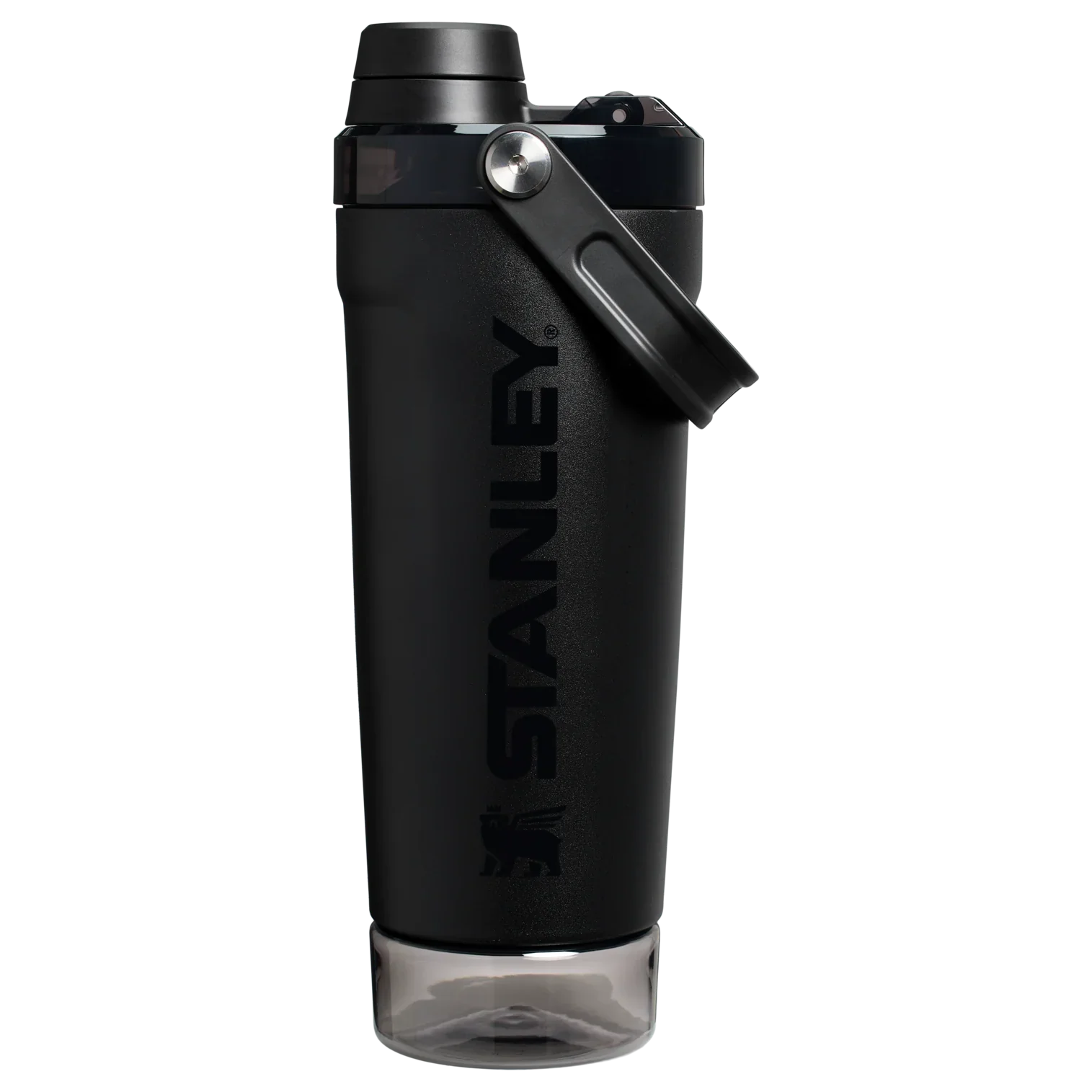 The 20-ounce Activate Shaker Bottle keeps your drink cold for hours, thanks to double-wall vacuum insulation. A rounded interior makes mixing and cleaning easy, while the fast flow spout provides a better sip. The inside is stamped with measurement lines and includes a removable strainer. The base storage container and the soft, easy-grip handle are great for on the go. And with a leakproof Tritan lid, it’s ready to toss in your bag.