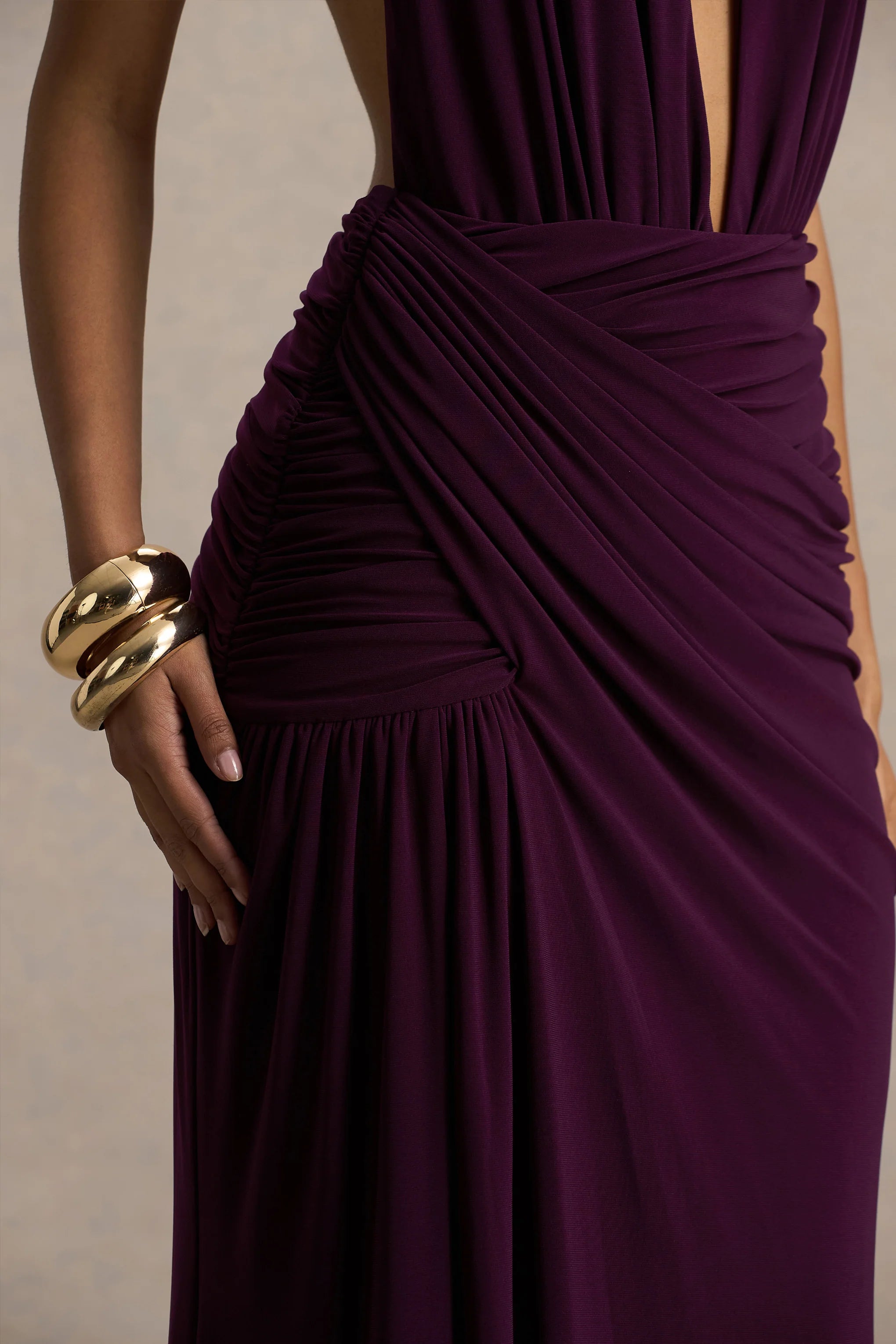 Make an entrance they won’t forget in Tilly, a sultry silhouette designed to turn heads. Cut from our sculpting stretch jersey in a rich burgundy hue and flowing to a maxi length, this gown brings glamour to every moment. The extreme plunge neckline and wrap detailing accentuate your curves, while ruching through the waist enhances and flatters the figure. The open-back finish adds an unexpected touch of allure, ensuring you captivate in every room. Style with sleek heels and gold accessories for your next special occasion.