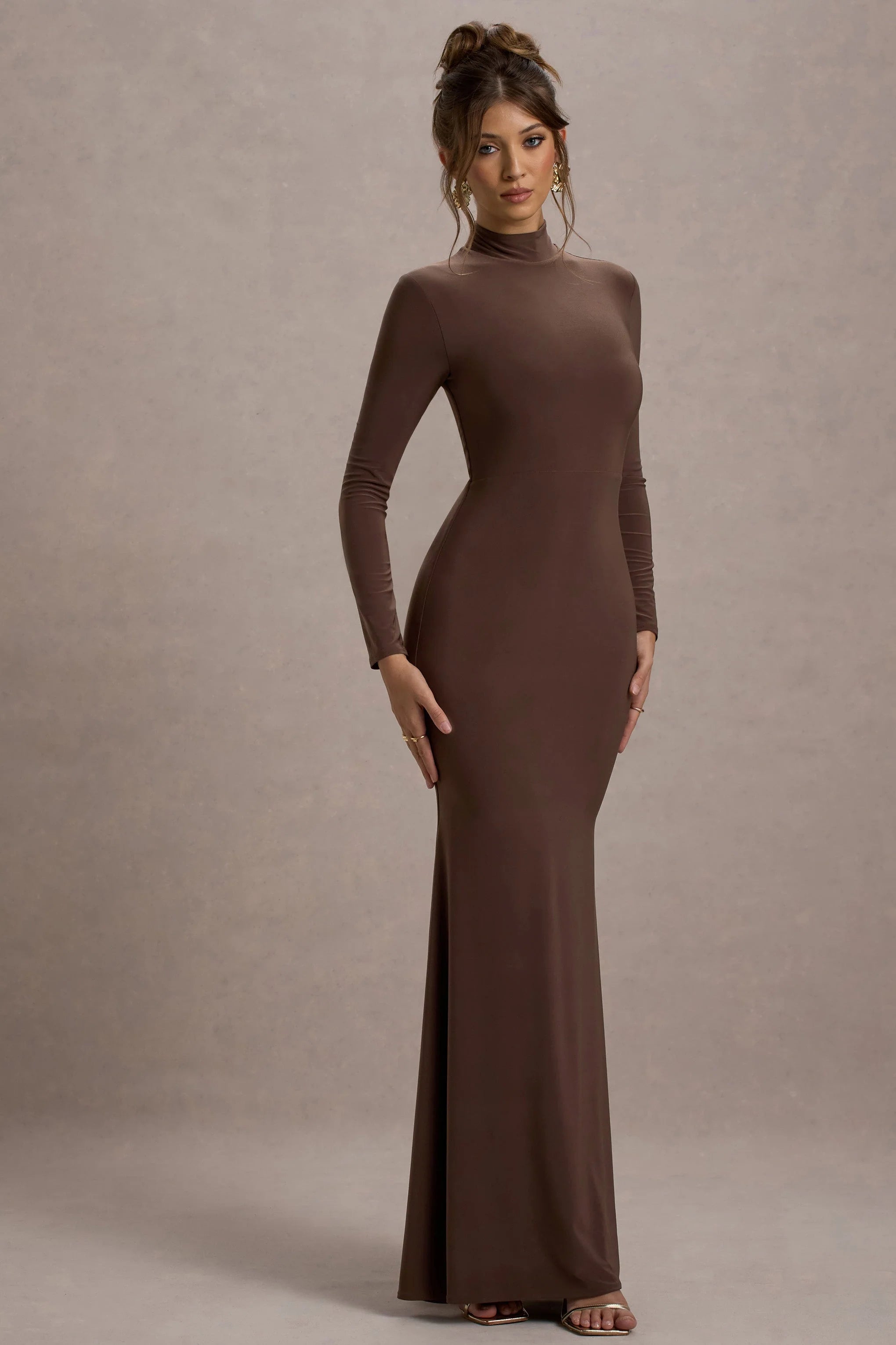 Curate a wardrobe of elevated staples starting with Tova. Expertly crafted in a curve-accentuating premium jersey, this figure-hugging piece boasts a demure high neckline and long sleeves. Compliment its rich chocolate shade with some sparkling accessories at your next event.