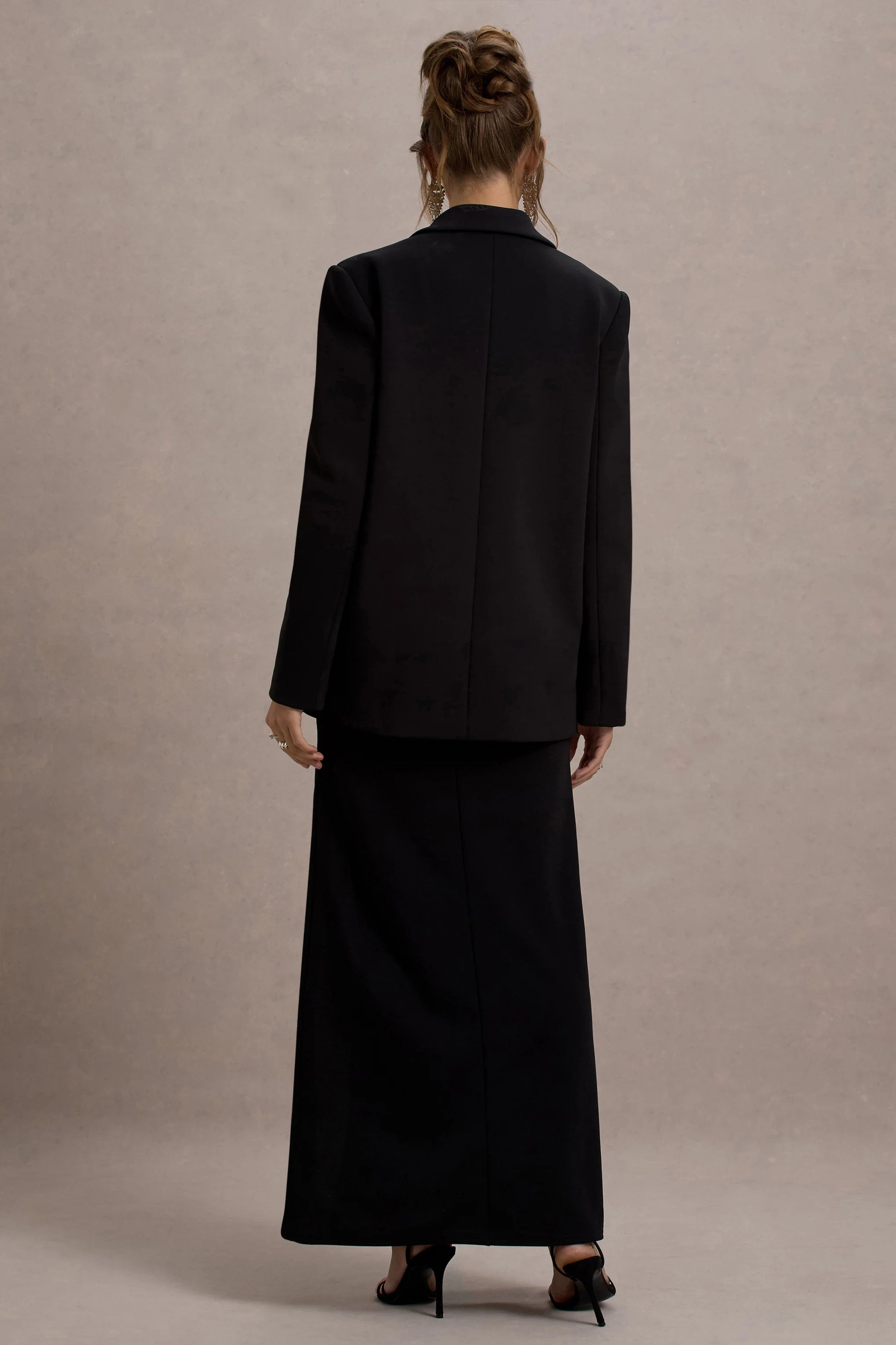Embody effortless chic this party season with Urban. Designed in a classic black shade of our premium crepe, this boxy blazer consists of subtle shoulder padding, peak lapels and a self-covered button closure. For an elevated cocktails attire, style yours with some court shoes like Blade.