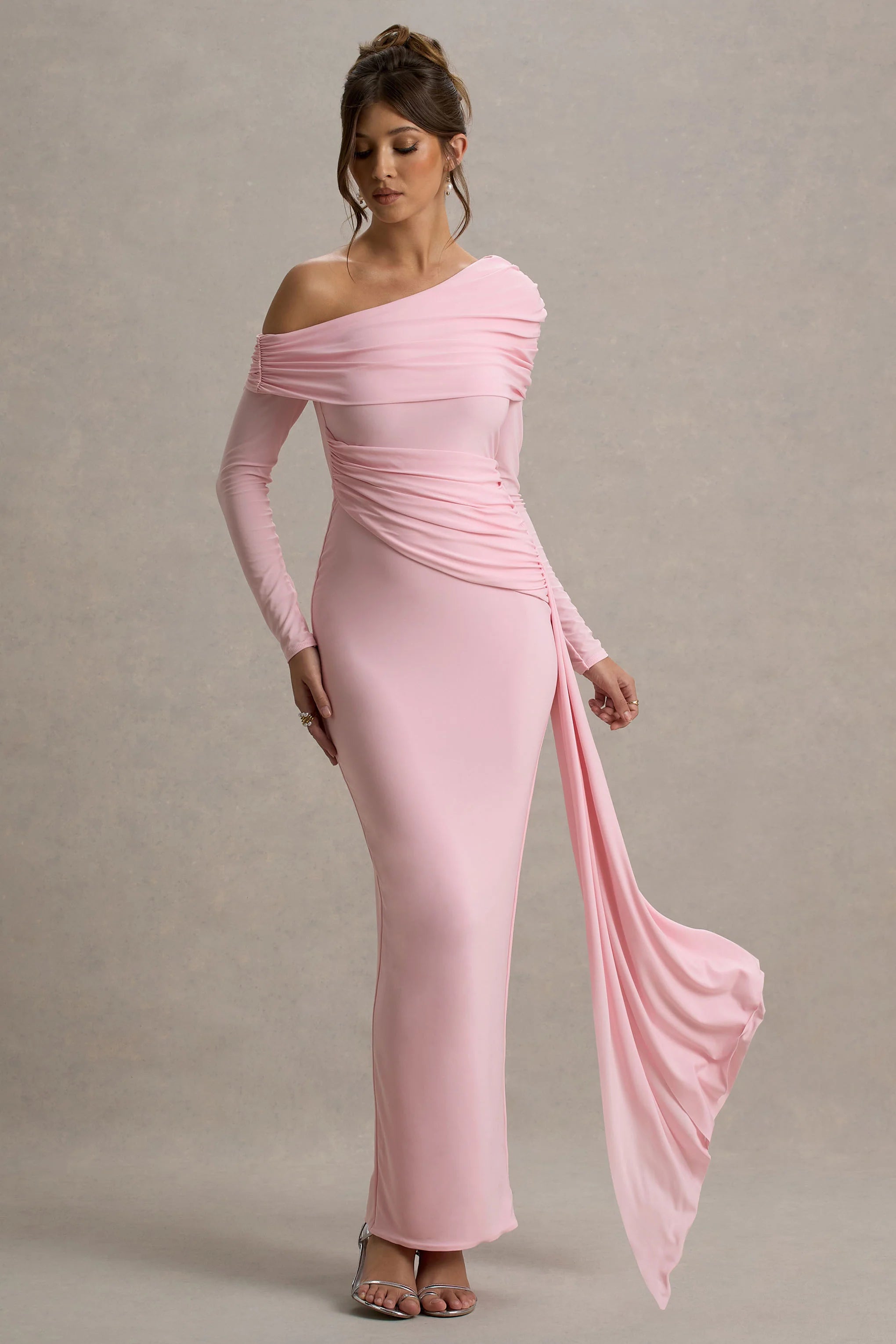 Event season calls for a timeless piece like Valina. Carefully crafted in a pink shade of our signature stretch jersey, this floor-sweeper features partial ruching throughout to flatter your silhouette. Complete with a lavish side drape, let Valina do the talking and team yours with some simple strappy stilettos and gold hoops.