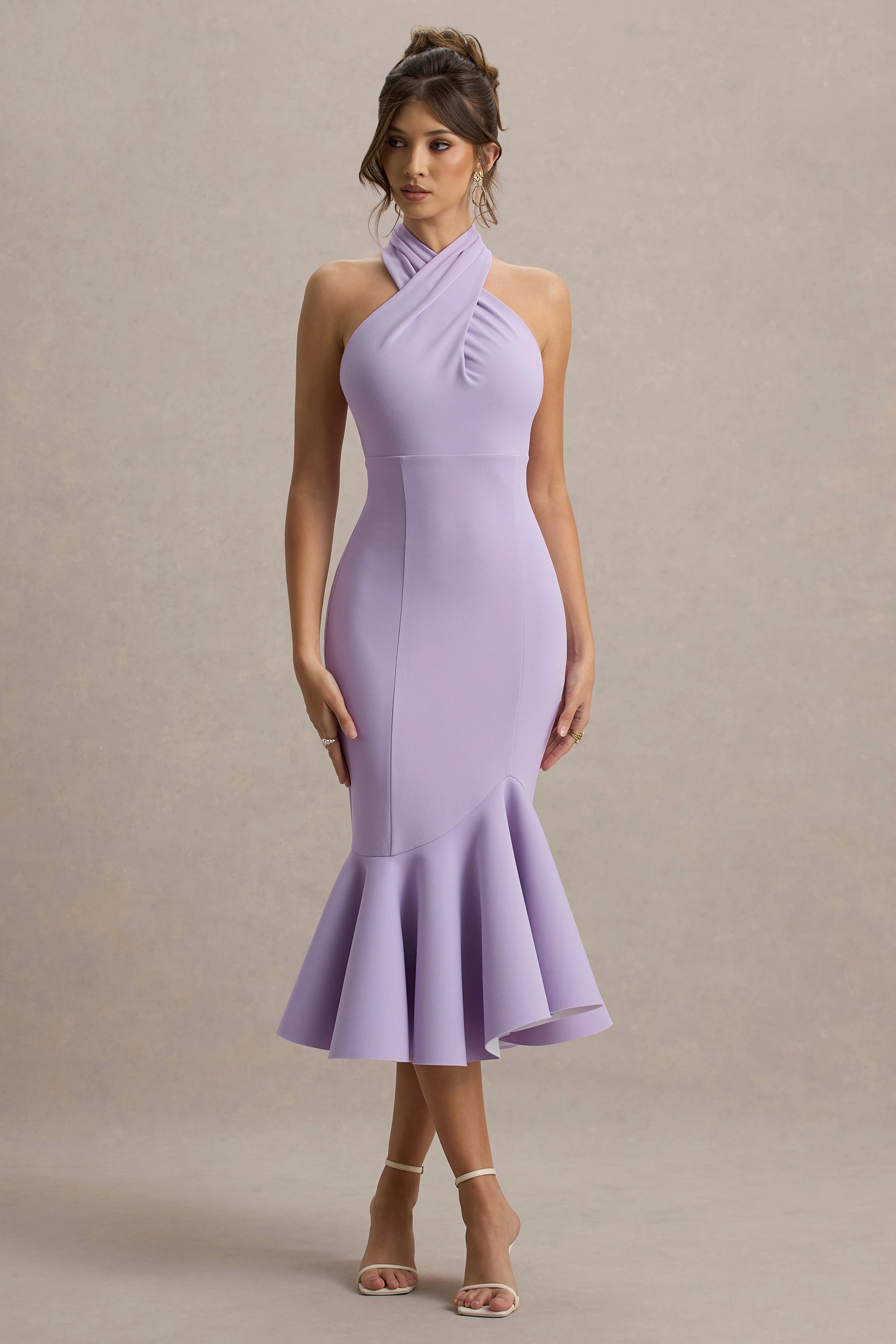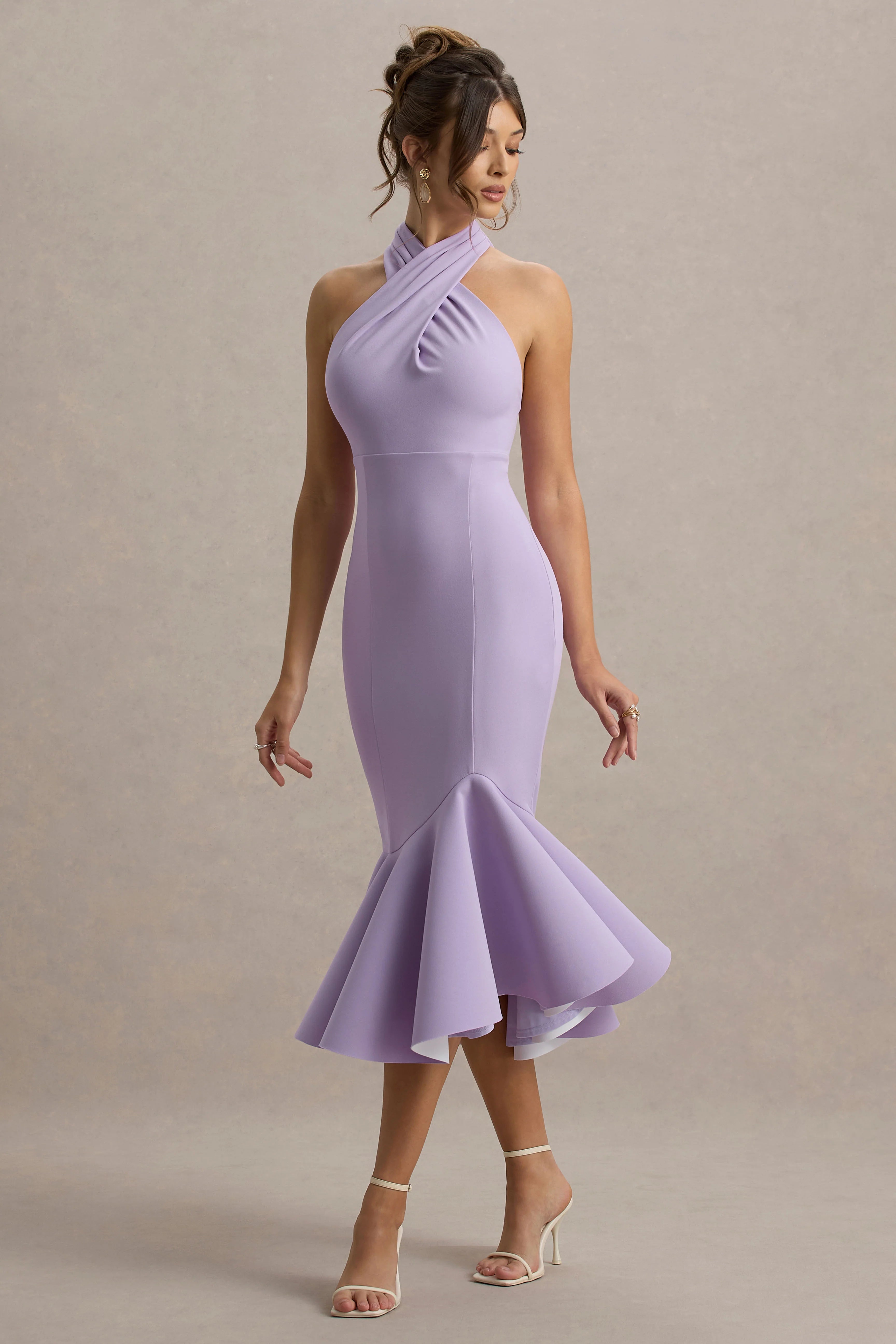 Both timeless and elegant, the Valletta midi is the perfect edition to your wardrobe, cut in our premium scuba crepe in a soft shade of lilac. Featuring a functional halter neckline and a ruffled hemline. This midi will turn heads wherever you where it.