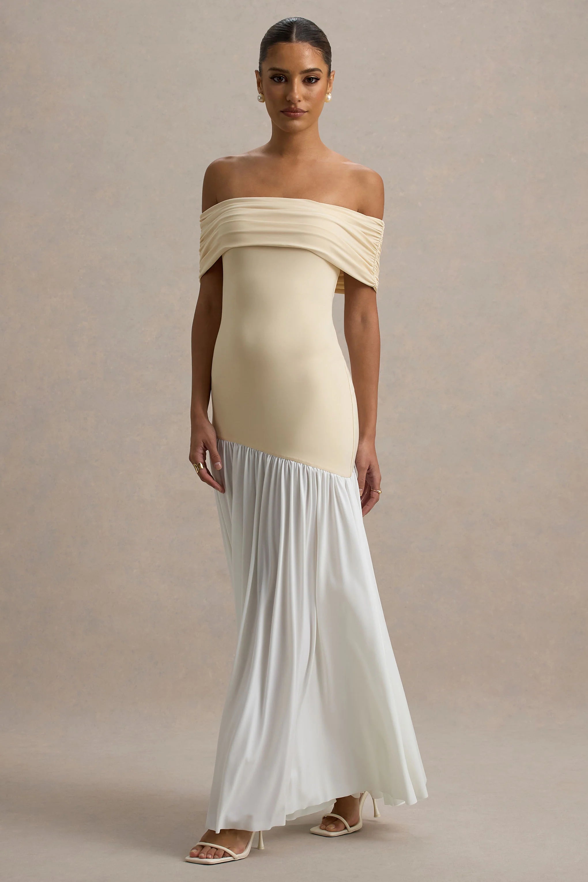 Obtain elegance and utter chicness in our Venezia Maxi. This piece uses a gorgeous contrast of stone and white, crafted in our premium jersey, to ensure a head turning outfit. The sleek upper-body paired with the voluminous puff skirt curates a chic, elegant look that is perfect for every upscale occasion. Style with a statement earing to complete the look.