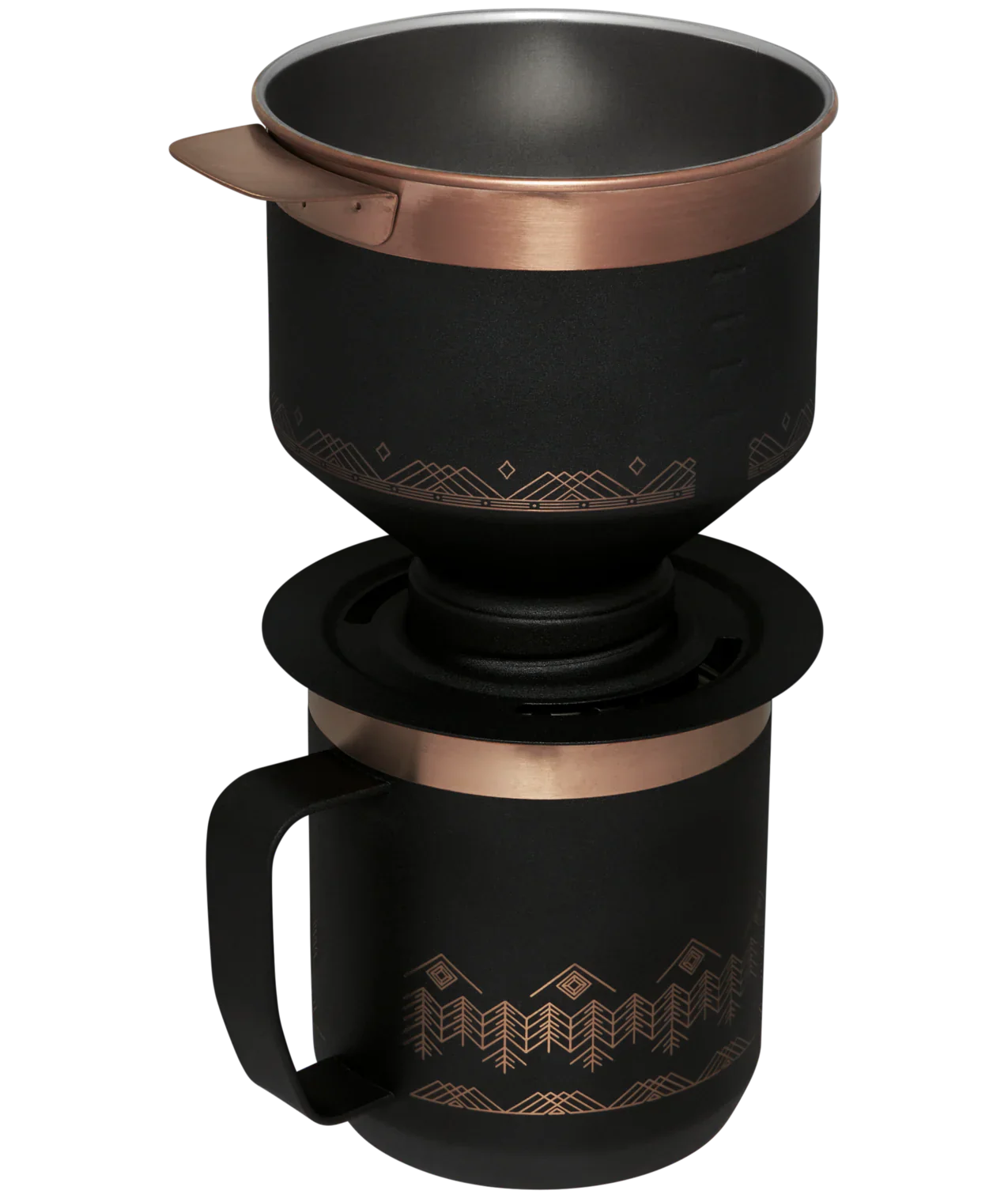 Nothing keeps the conversations going like a freshly brewed cup. The Winterscape Perfect-Brew Pour-Over set comes with a stainless-steel pour-over brewer, an easy-to-clean reusable filter, and our Stay-Hot Camp Mug. Just spoon in your favorite medium-ground coffee or tea leaves into the filter, saturate with hot water, and let the pour over do the rest. With its double-wall vacuum construction and Tritan™ Drink-Thru Lid, your favorite drink stays perfectly hot. Giving you more time and more laughter with the ones who matter most.